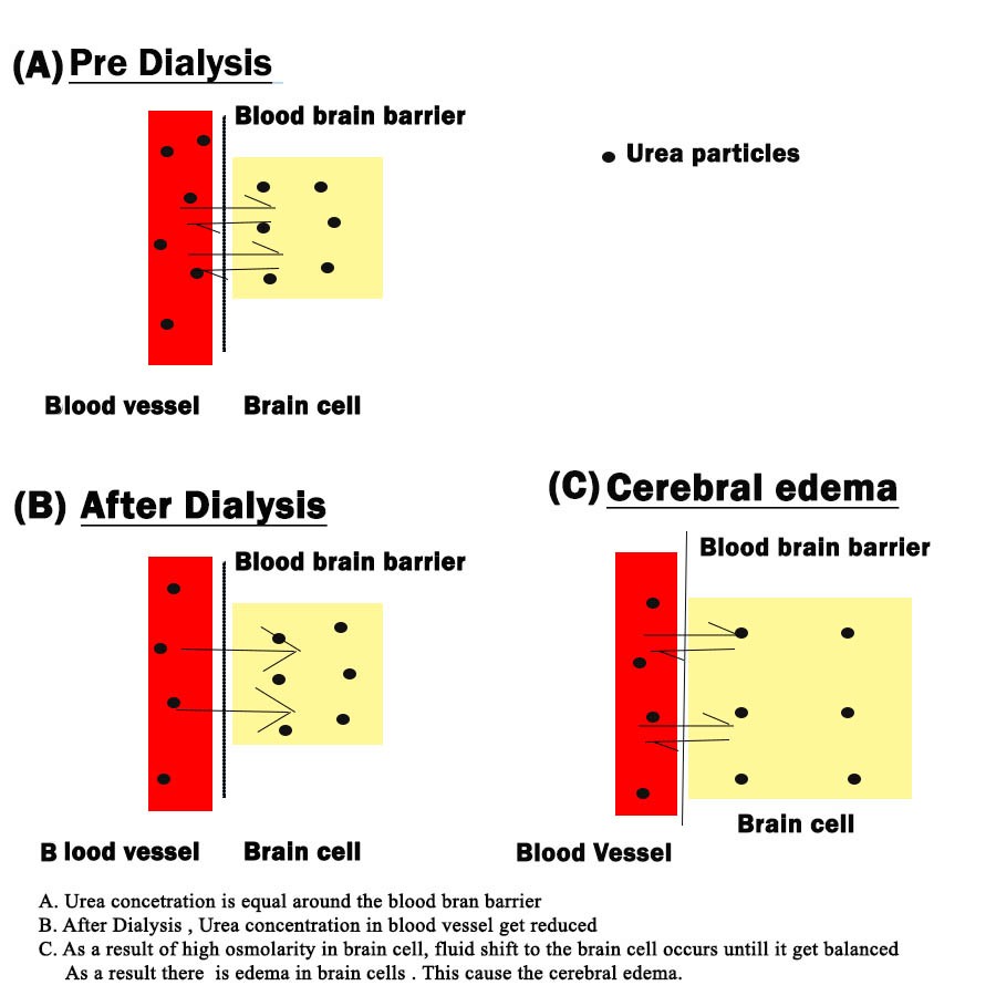 Water moves into cells, including brain cells. In extreme cases, this leads to dialysis disequilibrium syndrome. Even in milder forms, patients experience headaches, nausea, or fatigue.